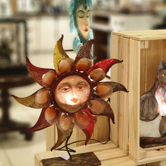 Handmade Celtic Sun Lamp – Capiz Shell & Metal Accent Light