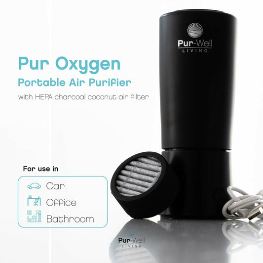 Pur Oxygen Travel Car Air Purifier – HEPA Coconut Charcoal Filter, Ionizer & Odor Eliminator