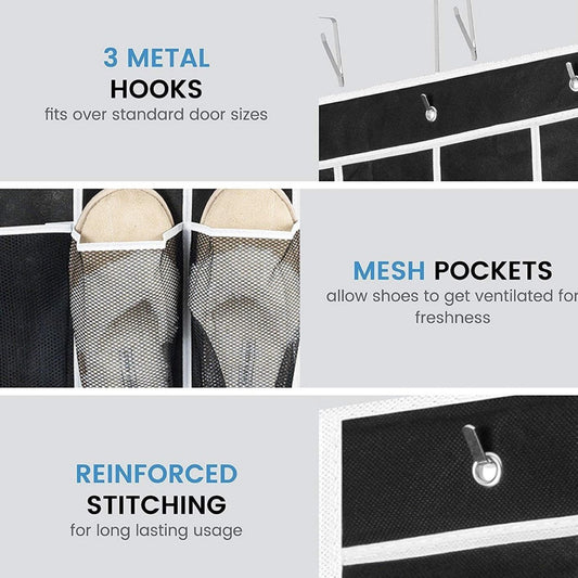 Zober 24 Pocket Over The Door Shoe Organizer w/ Chrome Hooks