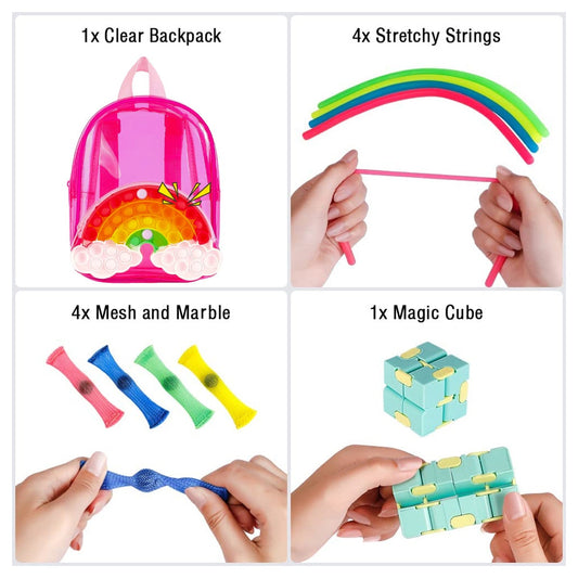 28pc Fidget Toy Fun Pack In Kids Backpack – Fun On The Go!